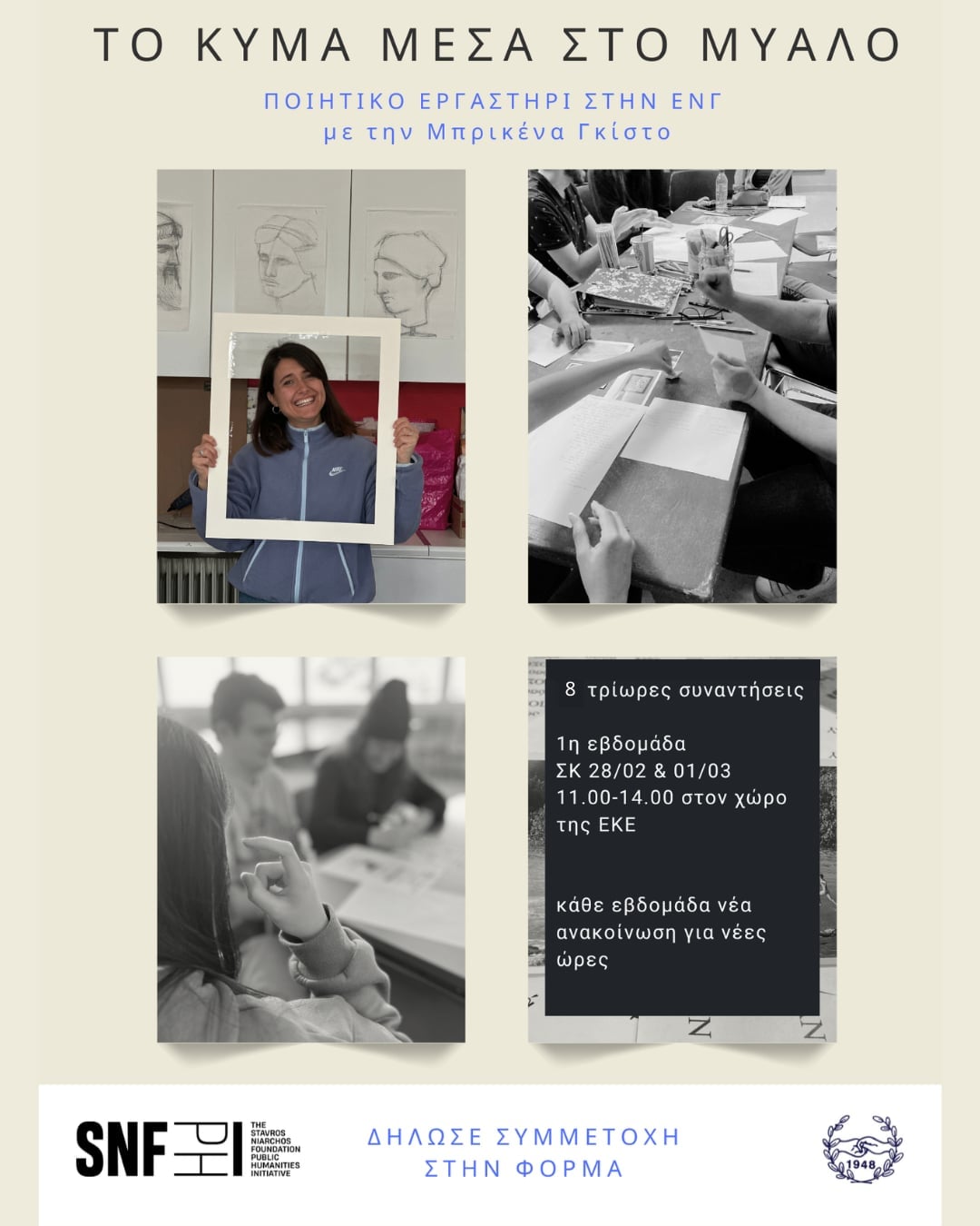 Με αυτά τα λόγια της Virginia Woolf στο βιβλίο Το κύμα μέσα στο μυαλό της Ursula K. Le Guin γεννιέται αυτό το εργαστήρι ποιητικής γραφής που πραγματοποιείται στην Ελληνική Νοηματική Γλώσσα (ΕΝΓ) και απευθύνεται σε Κωφά/βαρήκοα άτομα και μη κωφά άτομα που γνωρίζουν όμως επαρκώς την ΕΝΓ και επιθυμούν να εξερευνήσουν από κοινού την ποιητική γραφή. Το εργαστήριο στοχεύει στην εξερεύνηση της ποιητικής γραφής ορμώμενο από την ίδια την νοηματική γλώσσα, τον τρόπο που δομείται, εκφράζεται και συστήνεται από τα Κωφά άτομα. Εδώ καταρρίπτονται οι κανόνες της γλώσσας, απενοχοποιείται το λάθος, αναμειγνύονται κουλτούρες και γλώσσες και με συμμετοχικό τρόπο αναζητάμε νέους τρόπους συνδημιουργίας και συνύπαρξης μέσω της ποίησης. Απευθύνεται σε Κωφά/βαρήκοα άτομα και σε μη κωφά άτομα που γνωρίζουν την ΕΝΓ καθώς πραγματοποιείται στην ΕΝΓ. Μέγιστος αριθμός συμμετεχόντων/ουσών 12 άτομα.